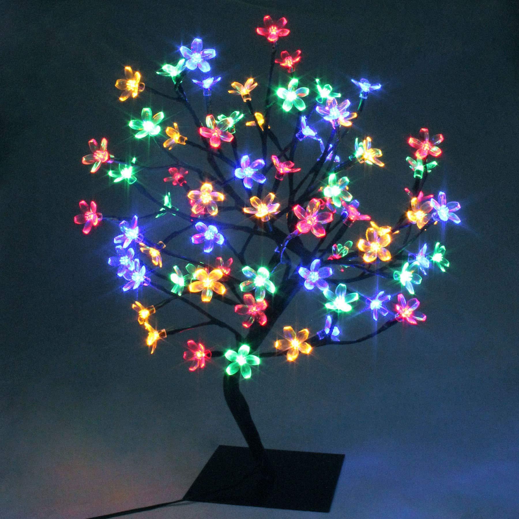 Copac decorativ cu flori de cires, 28 LED, Multicolor