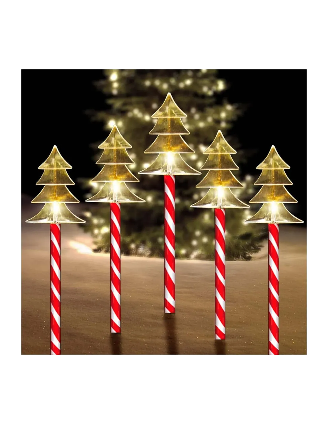 Decoratiunile de Craciun exterioare aduc lumina si magie in timpul sezonului festiv de iarna. Aceasta minunata decoratiune de Craciun cu forma de acadele de zahar luminoase cu LED-uri este perfecta pentru a transforma orice spatiu in ceva special si vesel, captand atentia copiilor si a musafirilor tai. Un aspect remarcabil al acestei decoratiuni de Craciun este ca este alimentata cu panouri solare, eliminand grija de a gasi o sursa de alimentare si de a ascunde cabluri inestetice. Este o alegere ecologica si practica pentru iluminarea exterioara a sarbatorilor de iarna.