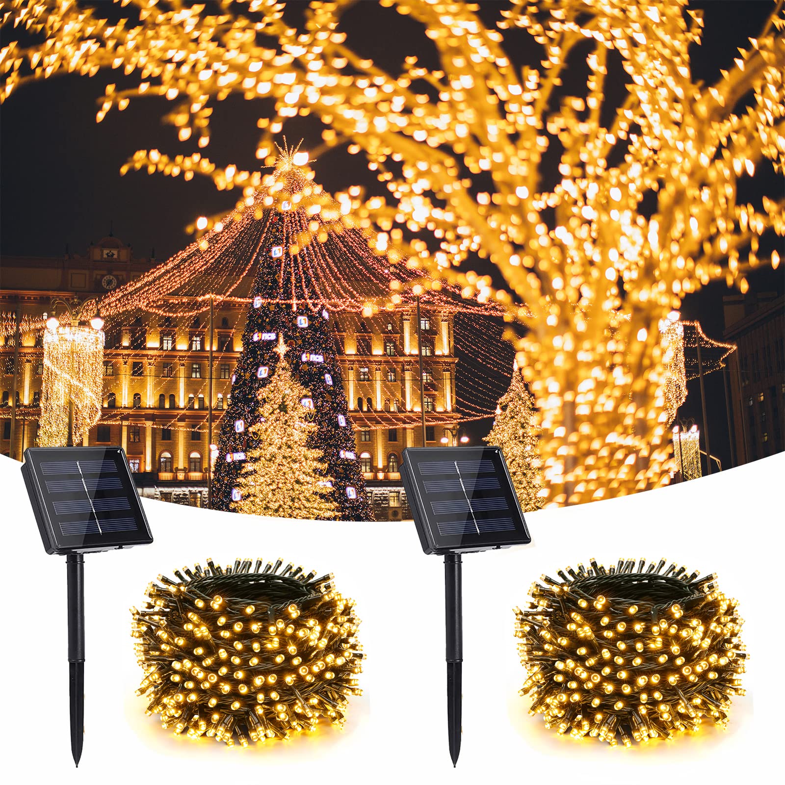 Set 2 x Instalatie solara 100 LED, exterior, Alb cald
