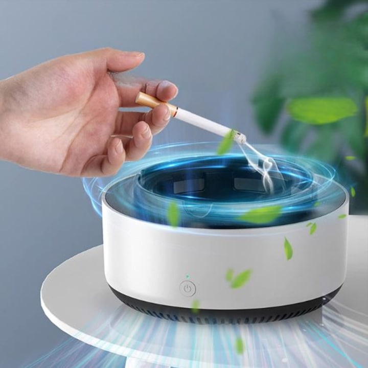 Bucura-te de un mediu mai curat si mai proaspat cu Scrumiera pentru Purificarea Aerului, ce functioneaza pe baterii. Acest dispozitiv functional nu doar aduna resturile de tigari, dar si curata aerul din jur.