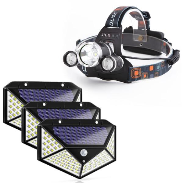 Set 3 lampi solare 100 LED + Lanterna frontala 3 LED