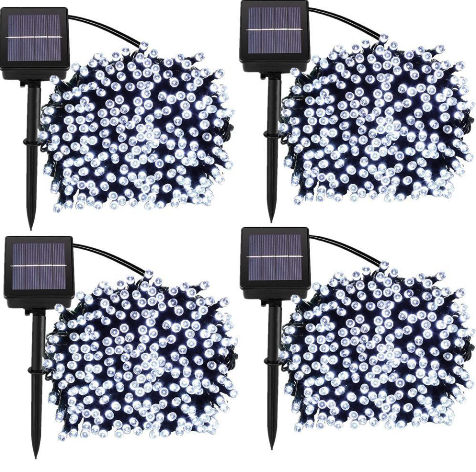 Set 4 x Instalatie solara 100 LED, Alb rece