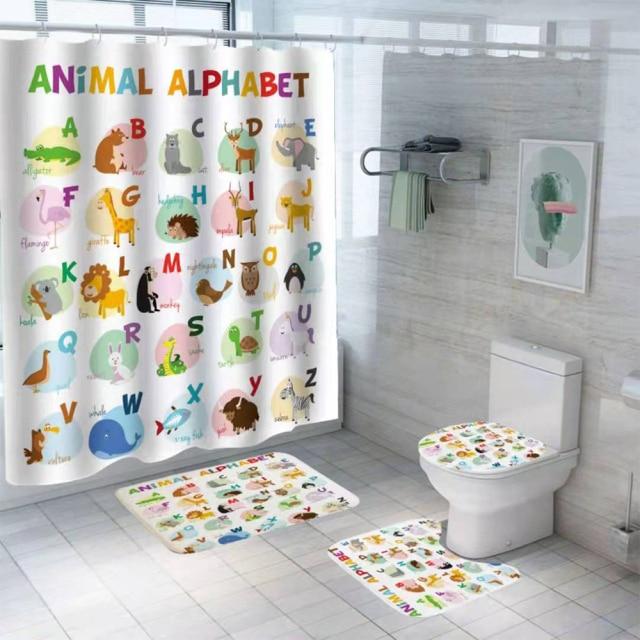 Set baie 4 piese: perdea, covorase si husa de toaleta, Alphabet