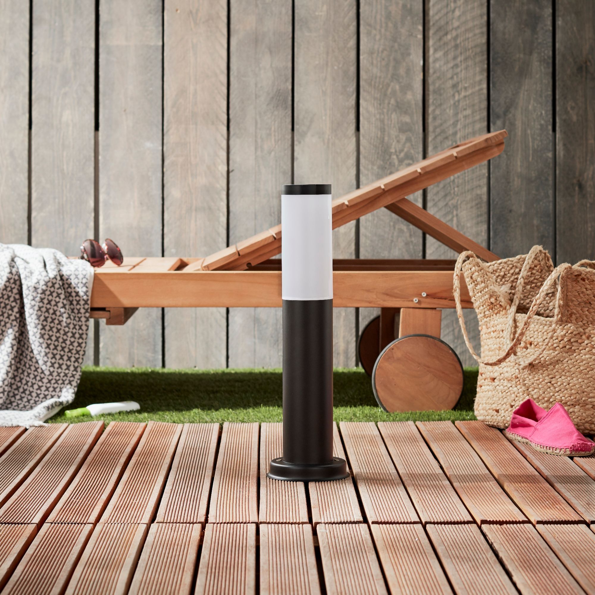 Stalp iluminat exterior, baliza LED Inspire Travis, H 44 cm, IP 44, negru