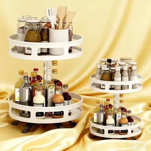 Pastreaza blatul si dulapurile in ordine cu acest raft organizator rotativ cu doua etaje, conceput pentru utilizarea mai eficienta a spatiului. Rotirea la 360° iti ofera acces rapid la produsele dorite, fara sa mai muti totul din jur.